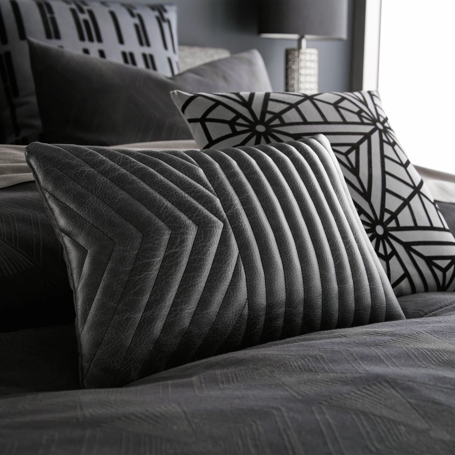 - 1 Faux Leather Channel Quilted Decorative Pillow 12×18