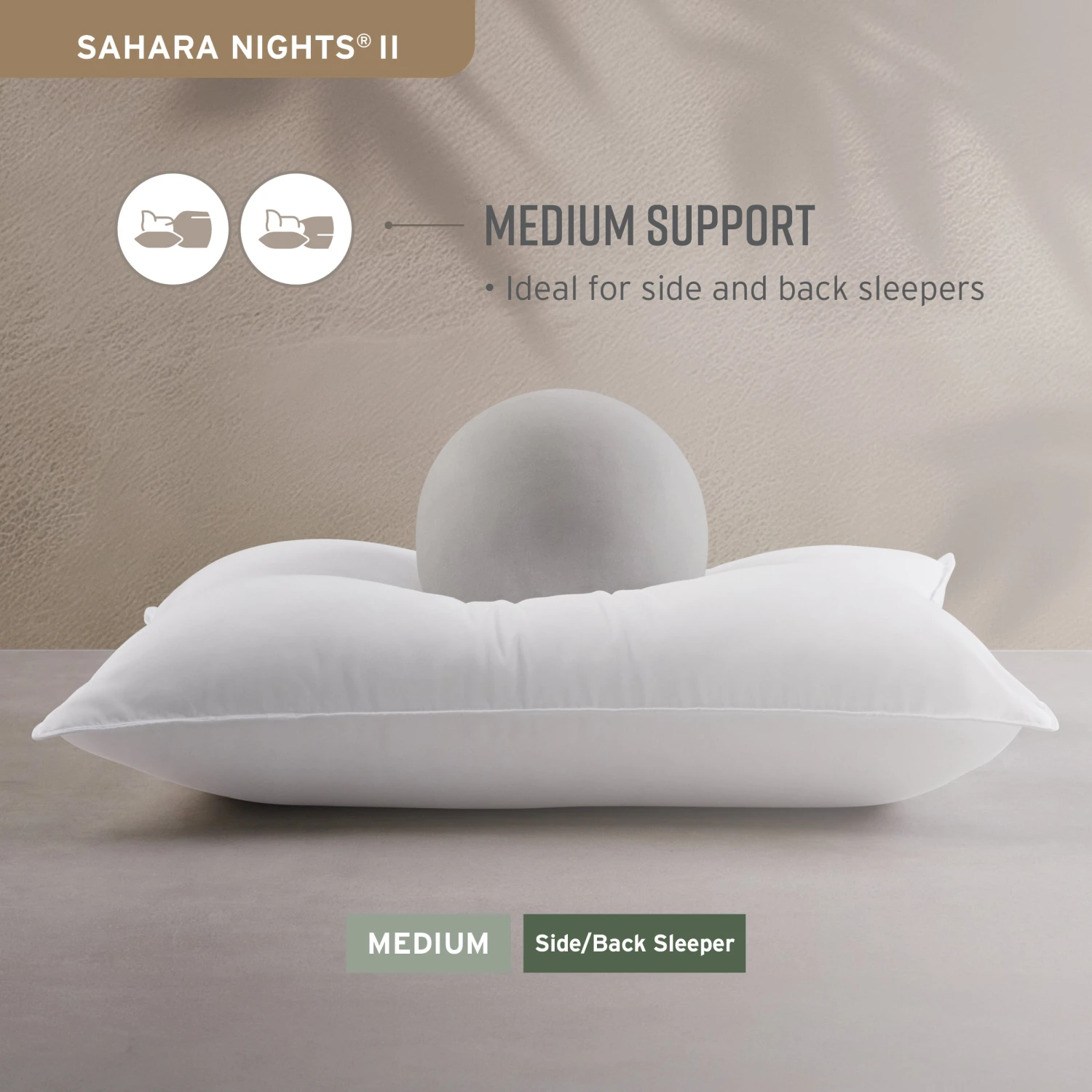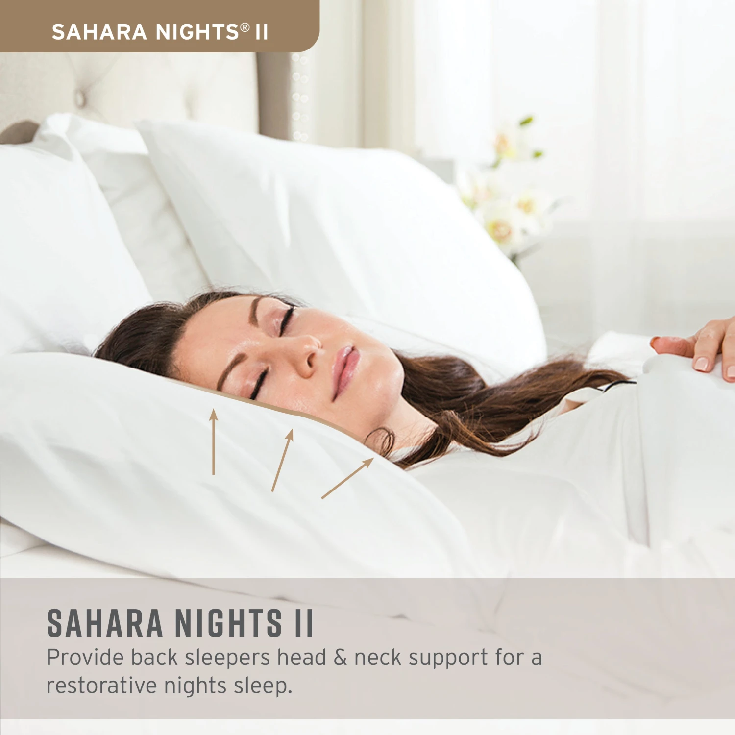 Our Sahara Nights II pillow is ideal for side and back sleepers. No more tossing, turning, neck pain or awkward sleep positions. Â Â Â