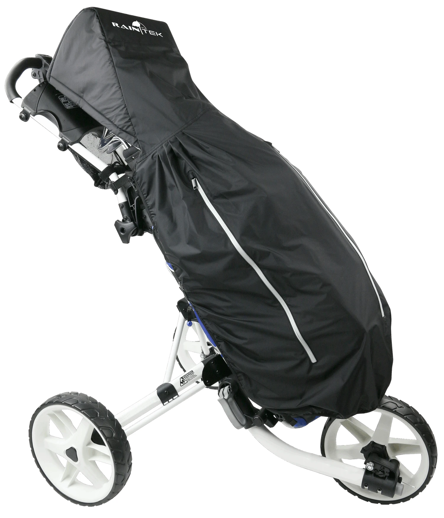 The RainTek Golf Bag Cover protects your gear from the rain. Features easy club access, convenient side and lower pocket access, rainproof scorecard pocket and a high wind protection strap.Â