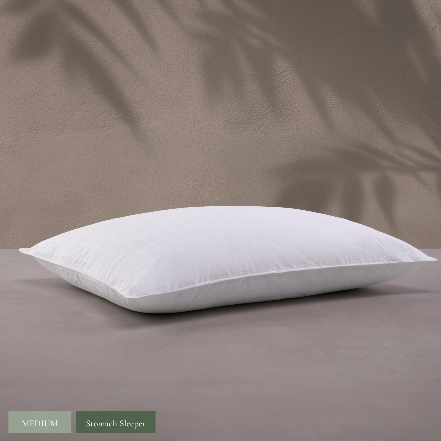 Introducing the lower loft version of our luxurious Sobella pillow, specifically designed for those who prefer a flatter, more tailored sleep experience. Crafted with the same 300 thread count, 100% cotton cover and filled with hypoallergenic, extra fine gel fiber, this slim pillow offers the perfect balance of comfort and support. The elegant geometric box design adds a sophisticated touch, while the low profile ensures optimal rest for stomach sleepers, making it an ideal choice for hotel-resort quality comfort at home.Â