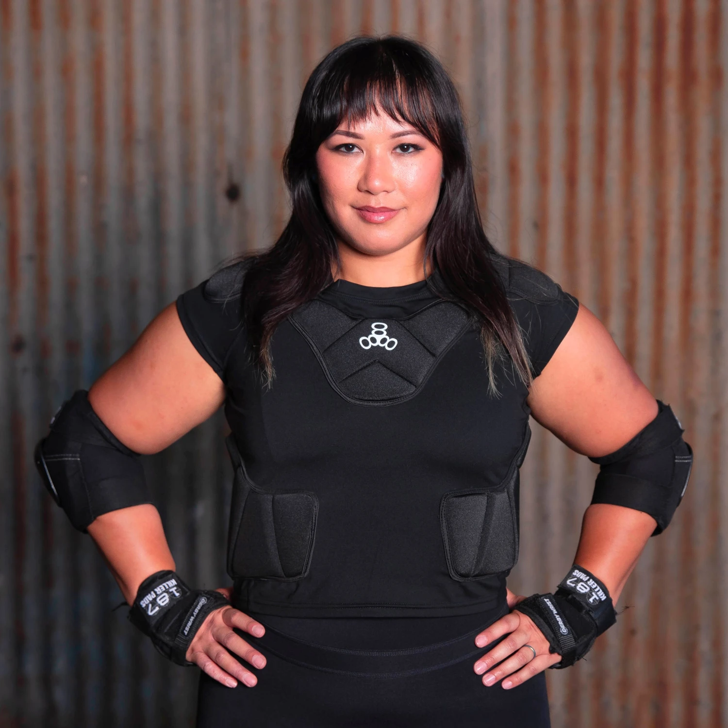 The perfect padded top for Derby with optimized protection in the sternum, rib, and shoulders. The slim-profile crop design with cap-sleeves was developed and refined with the world’s top derby players. This lightweight, comfortable, breathable BashGuard keeps bruises at bay so you can play hard and hit harder.